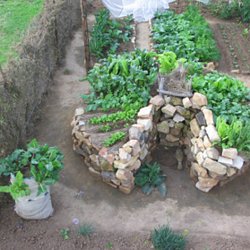 Pics. Le keyhole garden, un jardin nourricier en « trou de serrure ». Le substrat est fait de plusieurs couches de bois, de paille, de cendre et de terre.
